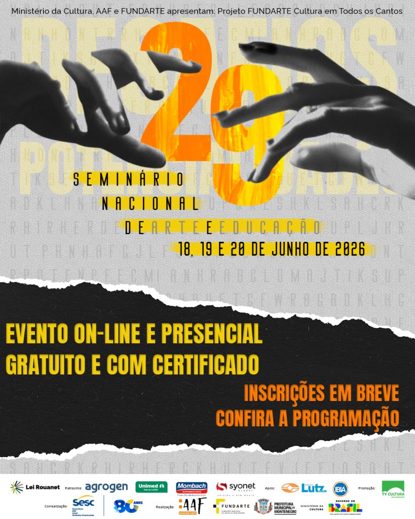 19h30min: Abertura oficial do 29º Seminário Nacional de Arte e Educação.